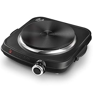 SUNAVO 1500W Hot Plates for Cooking, Electric Single Burner with Handles, 6 Power Levels Stainless Steel Hot Plate for Kitchen Camping RV and More Black