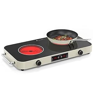 GIHETKUT Electric Cooktop,110V 2100W Electric Stove Top with Knob Control, 10 Power Levels, Kids Lock & Timer, Hot Surface Indicator, Overheat Protection,Built-in Radiant Double induction cooktop